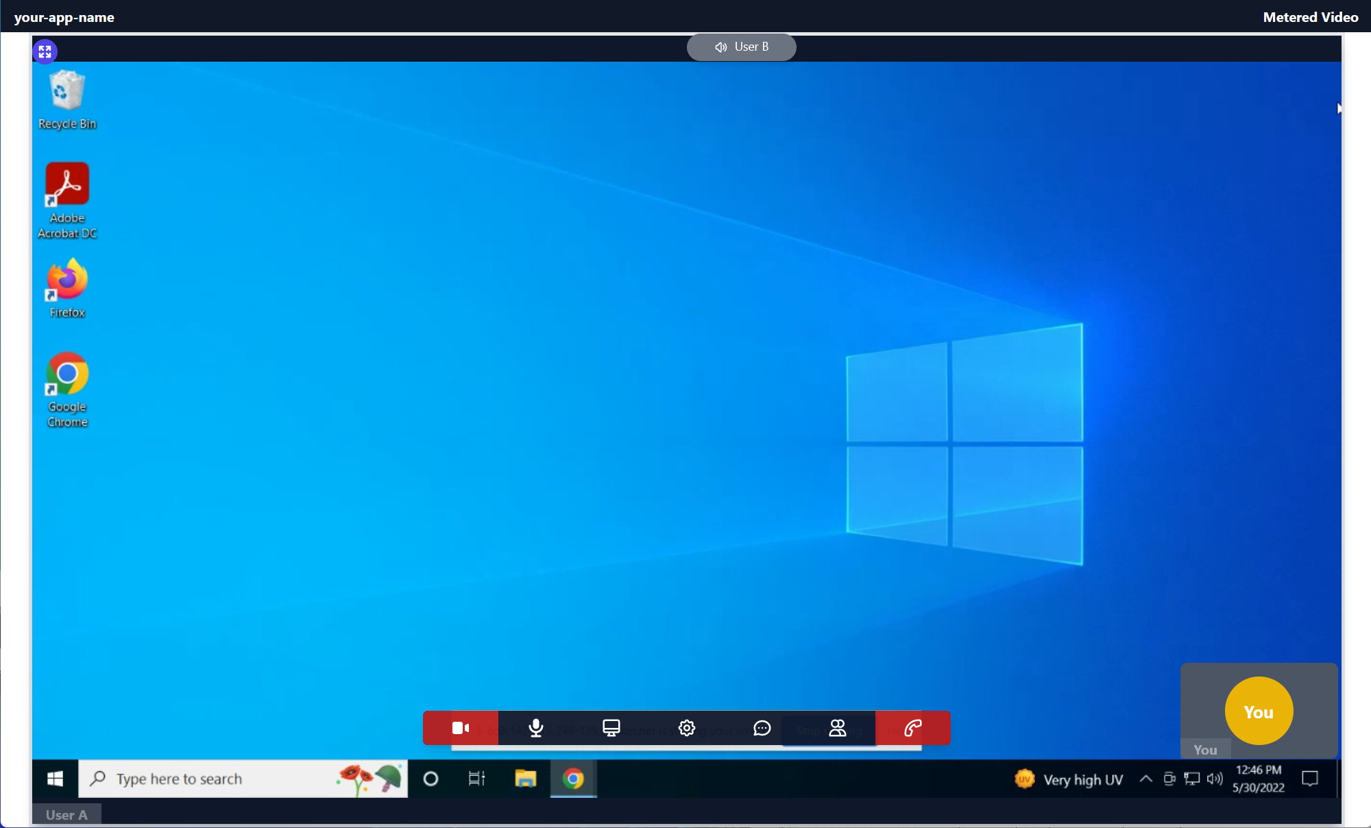 Share the meeting code with other for them to join the meeting and share your mic, camera and screen with them.